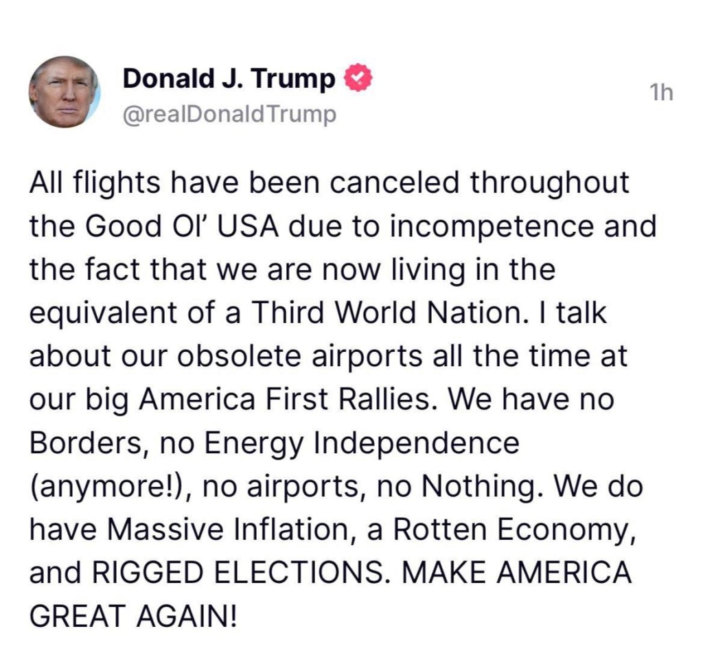 Might be a good time for all those stranded airline passengers to tune into alternative news sources for the real news of the day and what’s going on in Congress and with MSDNC MSM Fake News – to compare facts with the MSM premeditated fictions. —crp