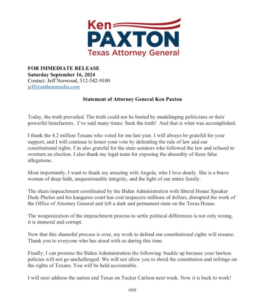 TX AG Ken Paxton Statement