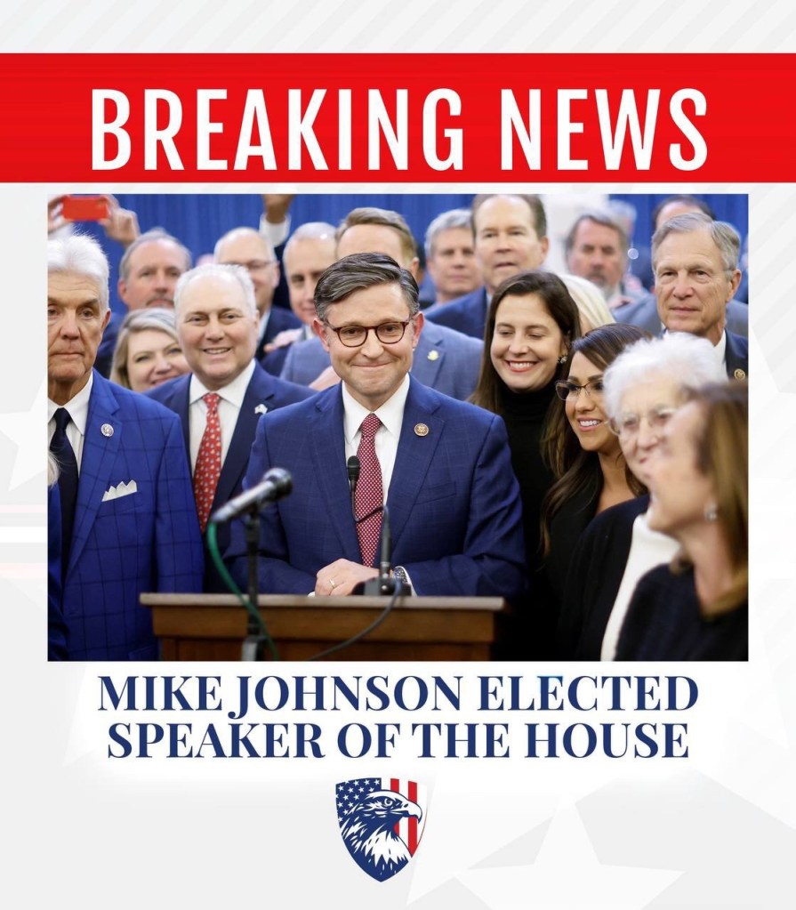 Breaking News: Republican Mike Johnson has been elected as the 56th Speaker of the U.S. House Of Representatives.