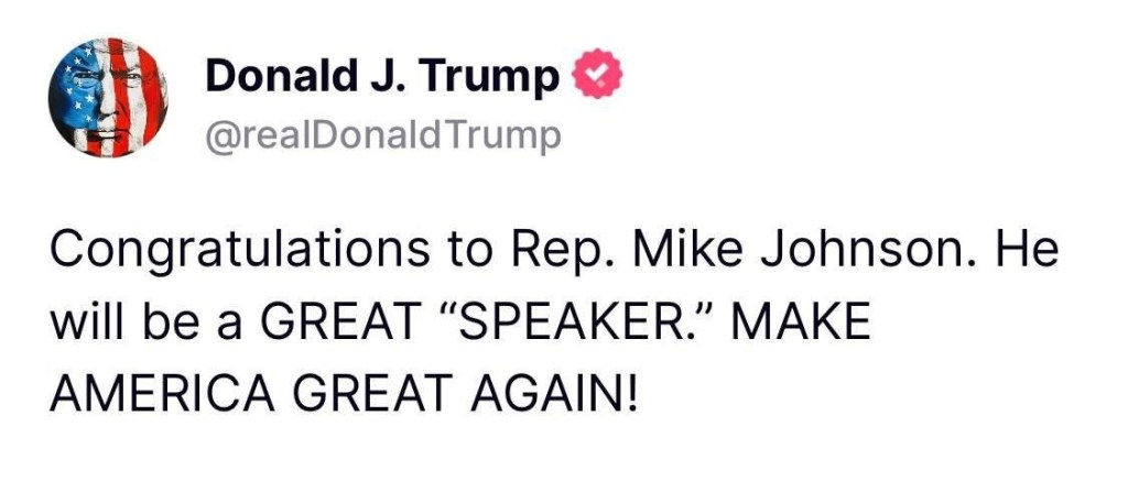 JUST IN – Republican Mike Johnson elected as the 56th Speaker of the U.S. House Of Representatives.