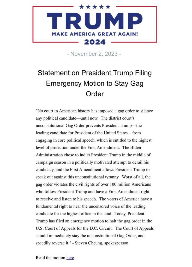 Statement on President Trump Filing Emergency Motion to Stay Gag Order