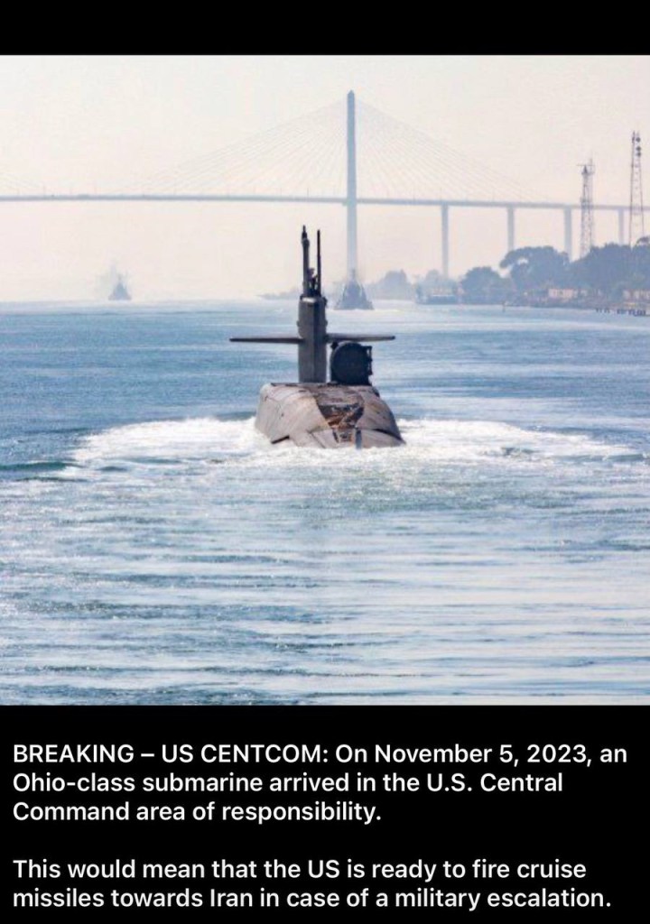 The US military announces an Ohio class nuclear powered submarine has arrived in the Middle East