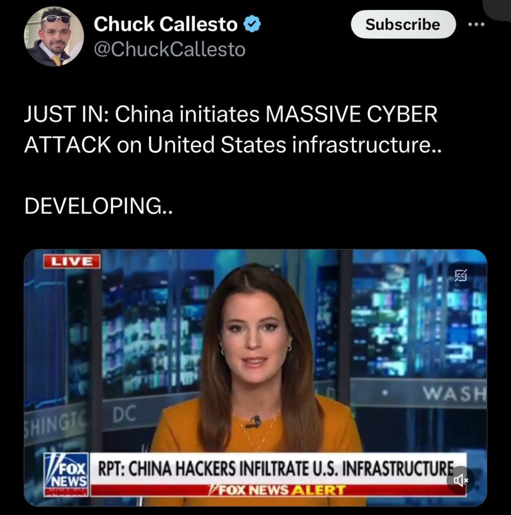 In just the last year, China’s cyber army has breached the computer systems of two dozen critical US entities including power and water utilities as well as key communication and transportation systems.