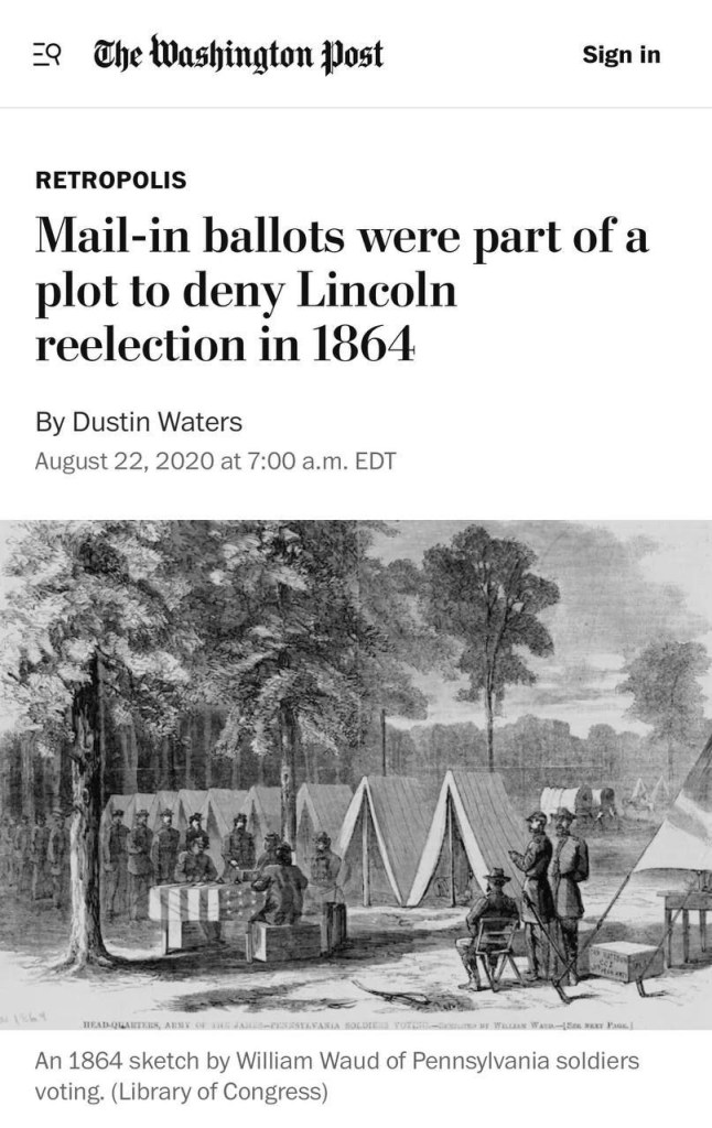 Lincoln was taken off the ballot in 1860. Mail in ballots were introduced, and on 4/12/1861 the civil war began.