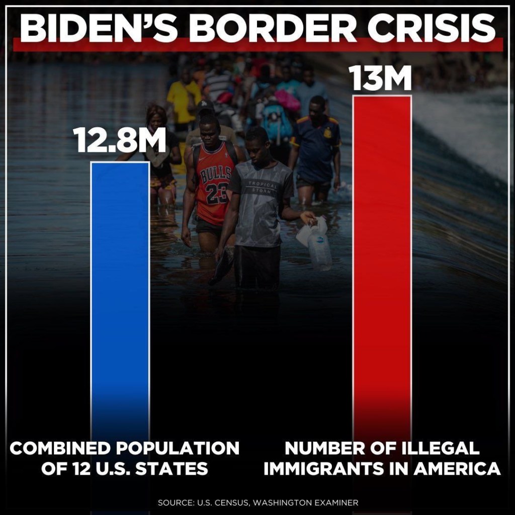 The number of illegal invaders in the United States is now greater than the population of 12 States combined.