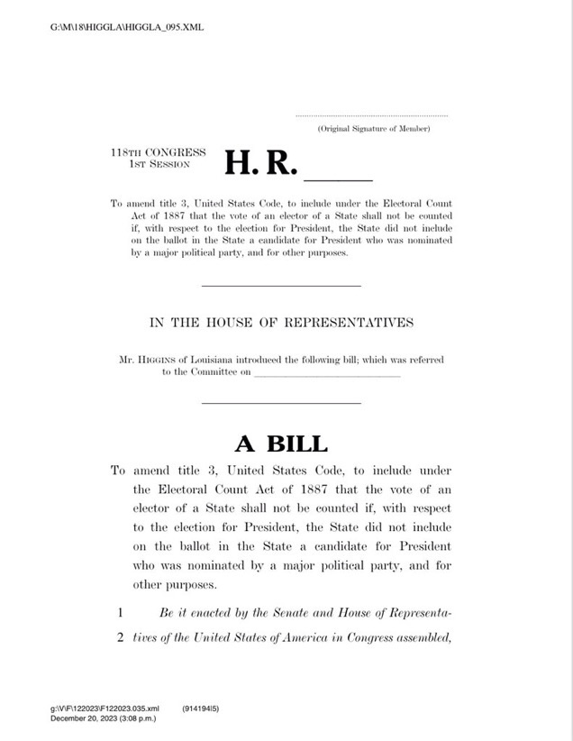 New law… If any state in our Union blocks the official nominee of a major political party from the Presidential ballot, their electoral slate will not be counted by Congress on the following January 6th.
