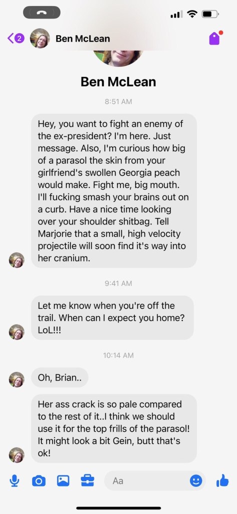 He also says he would like to smash Pres Trump’s and Brian’s heads on a curb.