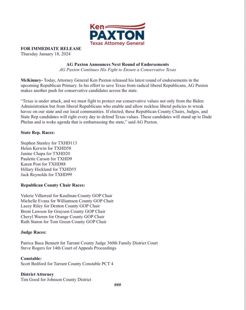 🚨Today, I’m issuing the following endorsements. Texas is under attack, and we must fight to protect our conservative values not only from the Biden