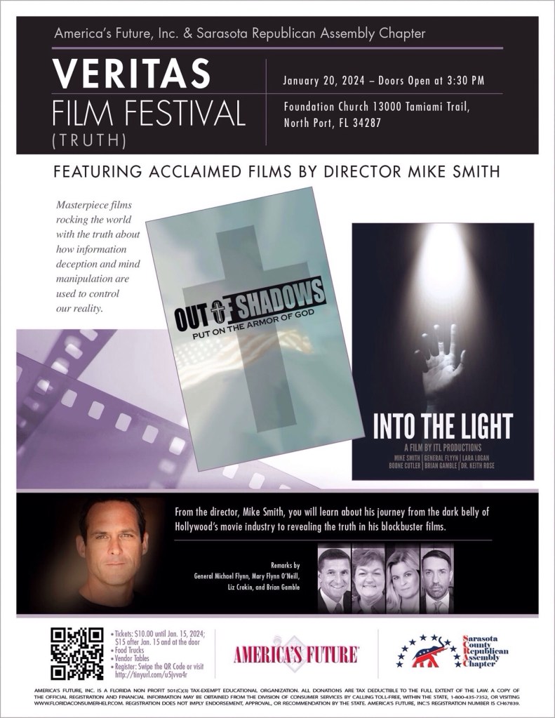 Join us for an epic movie night on Saturday, January 20th. We will gather to watch Mike Smith’s bombshell movies “Out of Shadows” and “Into the Light” in person.