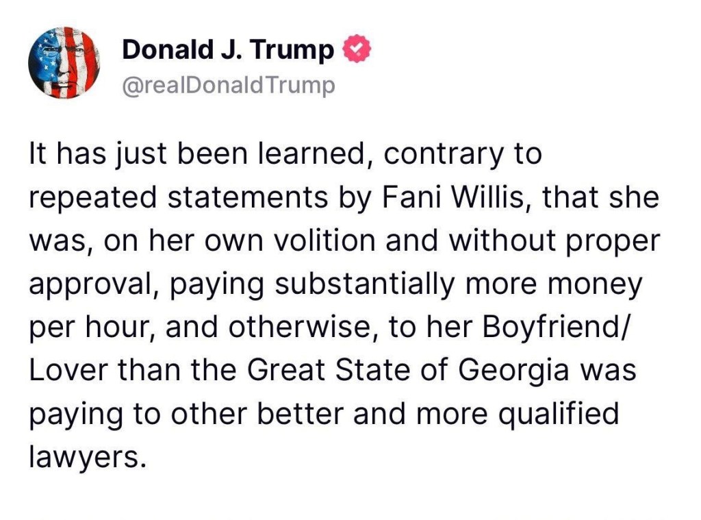 On that affair between Fulton County DA Fani Willis and Special Prosecutor Nathan Wade?