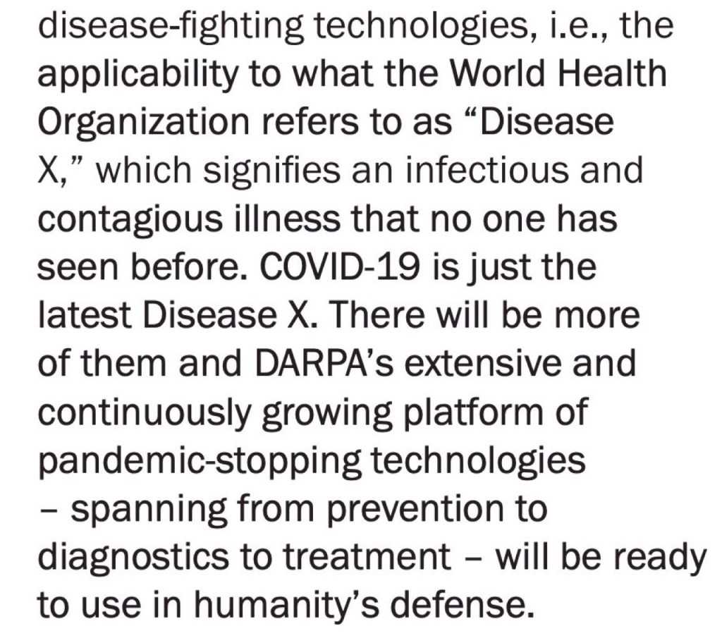 DARPA is foreshadowing that in regards to Disease X: “there will be more of them”. source: darpa.mil/attachments/Pr…