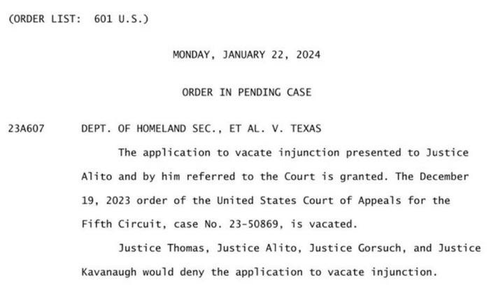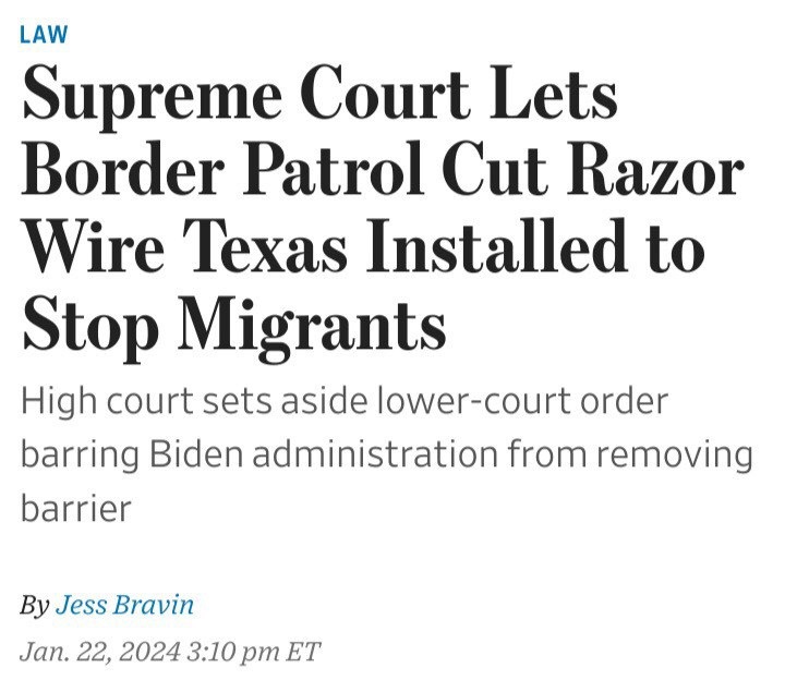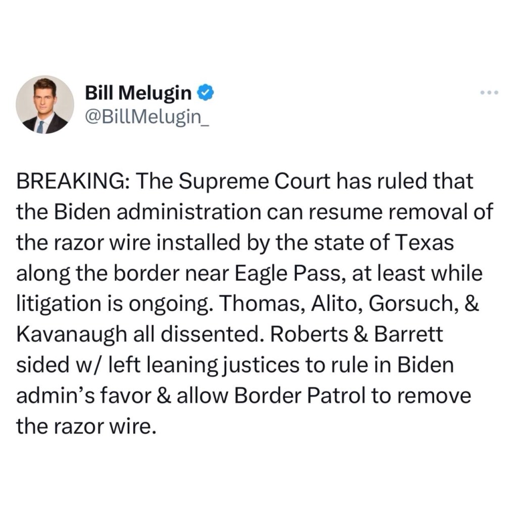 🇺🇸 ❌ 🇺🇸 The Supreme Court just ruled 5-4 that the Biden admin can remove physical barriers Texas put at their border to stop the invasion.