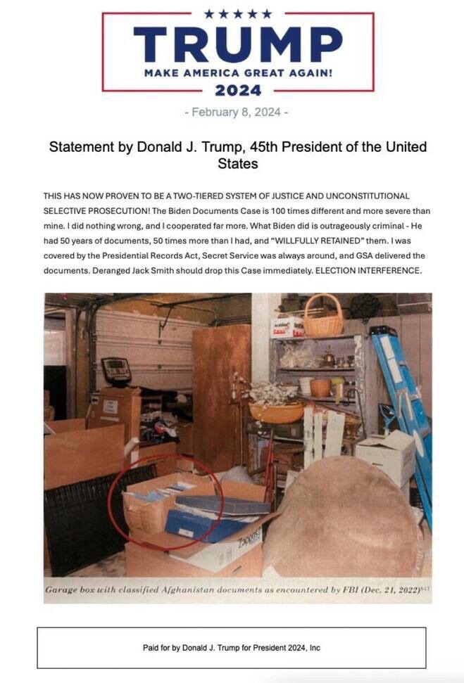 President Trump about the boxes in Biden’s garage…