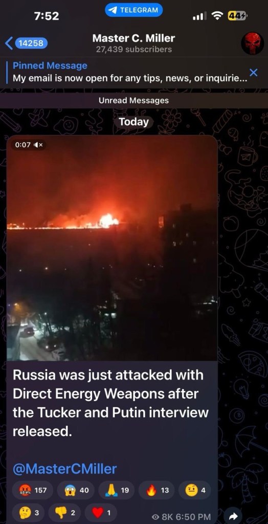 Russia was just attack with Direct Energy Weapons after the Tucker and Putin Interview was released.