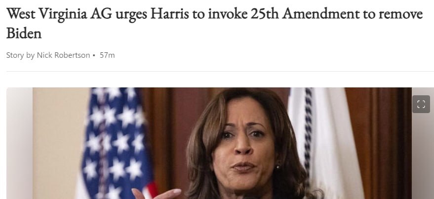 WVA AG calls on Kamala Harris to invoke the 25th Amendment against Biden!