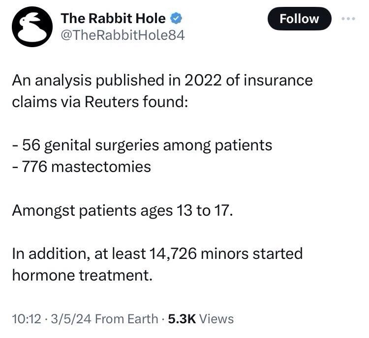 US Insurance companies are, in fact, paying out claims filed for sex-change operations performed on minors.