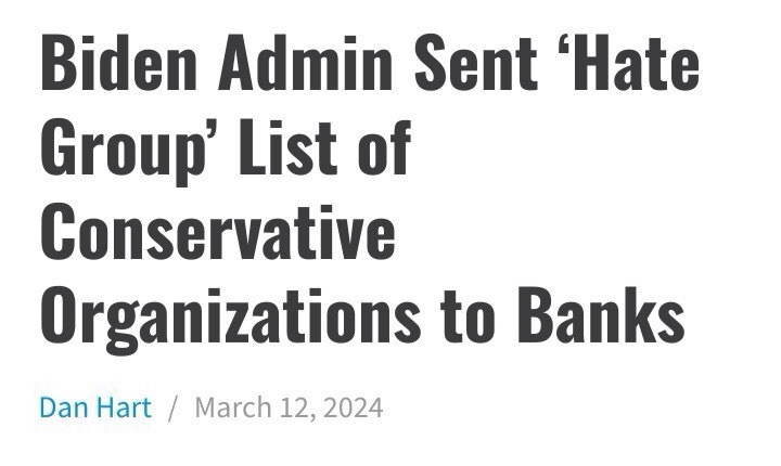 It came to light last week that the Biden administration provided a listing of “hate groups,” which included mainstream conservative organizations, to major U.S. banks for the purpose of monitoring financial transactions in the wake of J6.