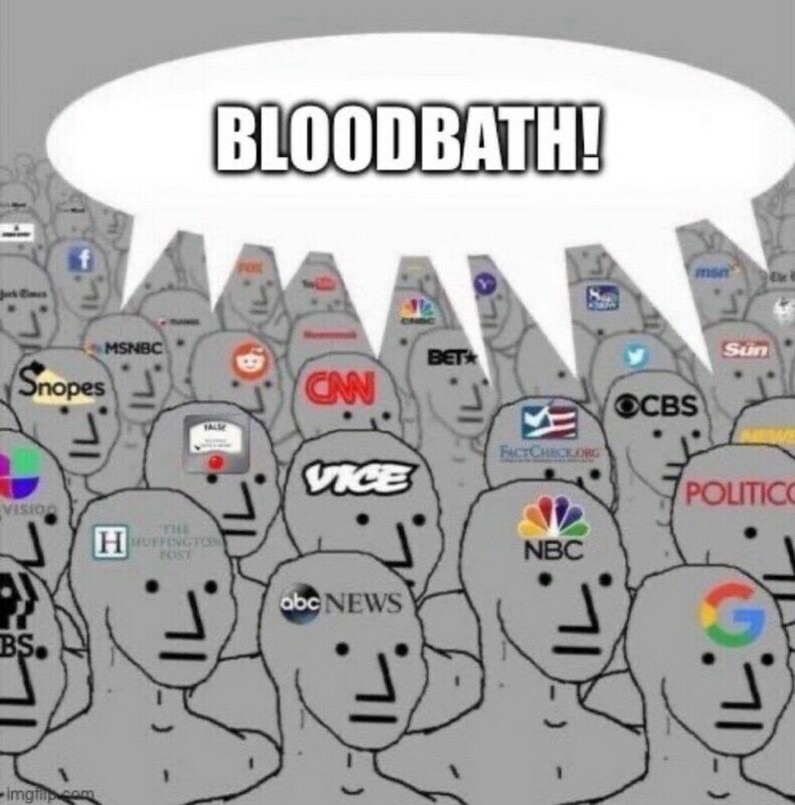 No doubt DJT’s contextual use of the word “bloodbath” was intentional. He knew what the [DS] scripted MSM Mockingbird Fake News & Propaganda Networks would do with it! Exposure of these [DS] Fakes is the key….