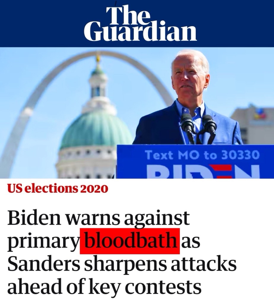 “a notably fierce, violent or destructive contest i.e. the campaign has become a bloodbath” (Webster’s Dictionary) you know like BLM ANTIFA Violent Riots Looting Pillaging Physical Assault Raping Shooting Murdering Arson Bombing Destroying Denigrating etc.