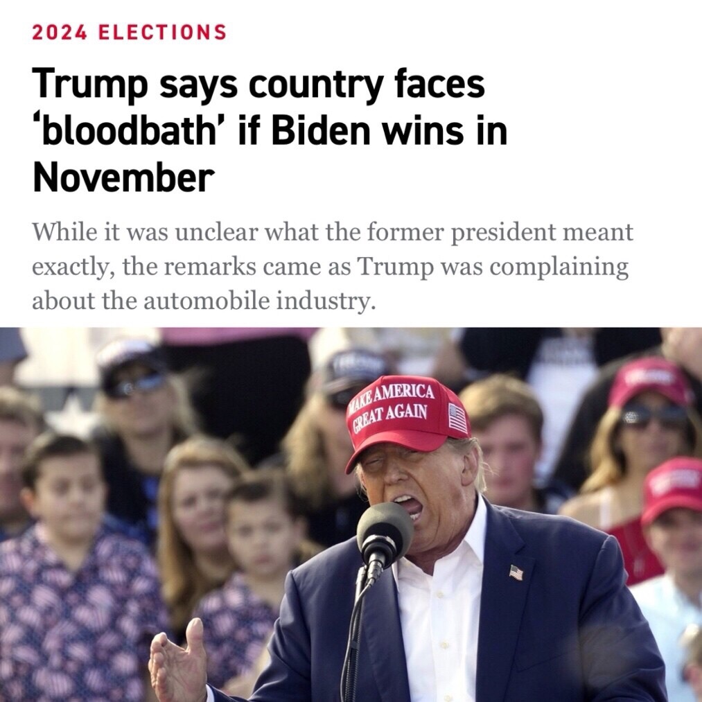 Since the mainstream media falsely claims that Donald Trump warned of a “bloodbath” if he loses the 2024 election, I encourage you to listen to what he actually said and what he was referring to and draw your own conclusion: the automobile industry and the loss of jobs. WATCH