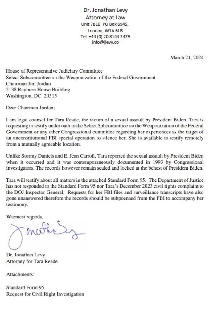 The request for Tara Reade to testify remotely was officially filed today with chairman Jim Jordan so she can speak before Congress on Biden’s criminality.