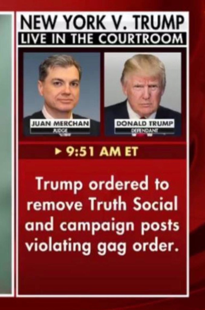 Trump ordered to remove TruthSocial and campaign post violating his gag order.