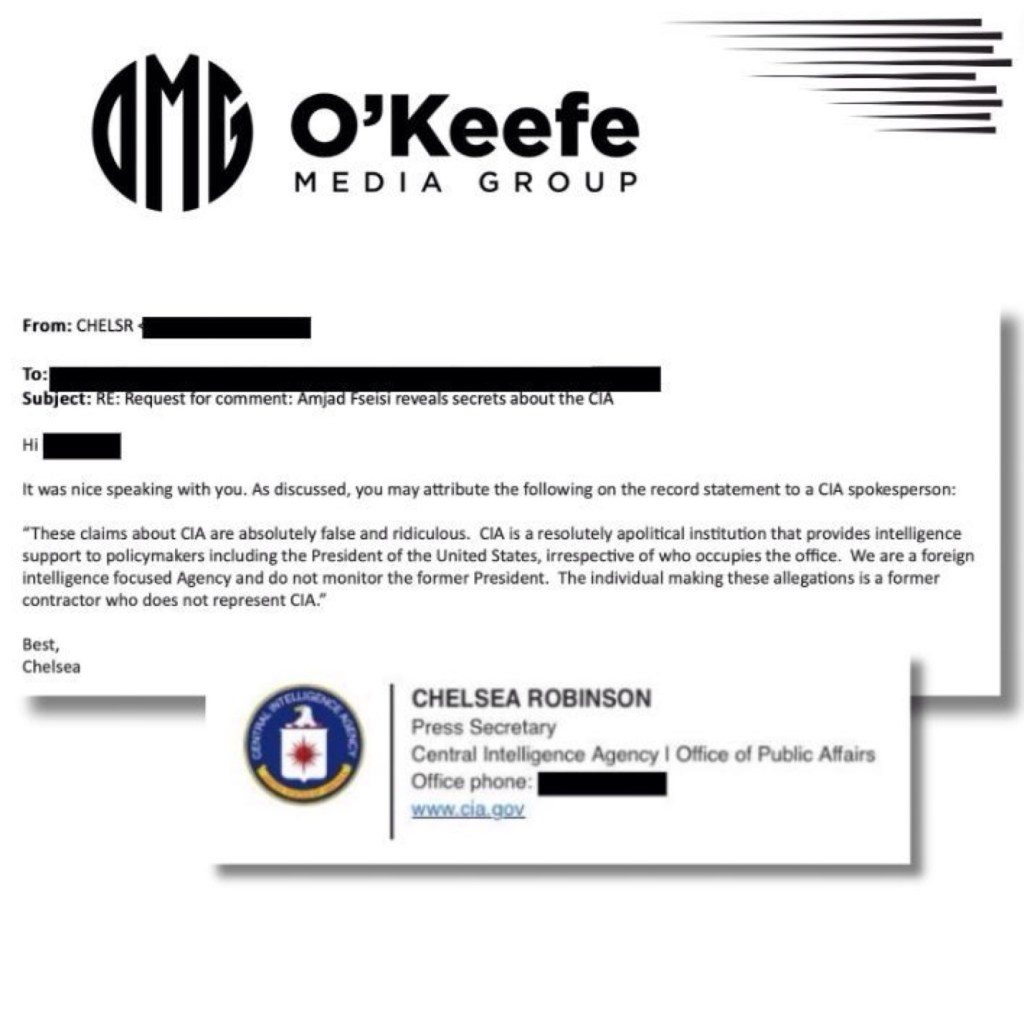 CIA COMMENT: The official appears to have been terminated as a result of our reporting today. When the CIA was asked for comment, O’Keefe Media received an exclusive statement on the record from a CIA spokesperson today: