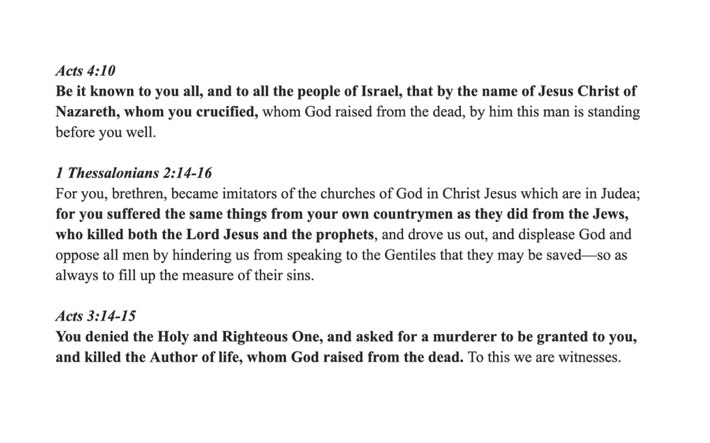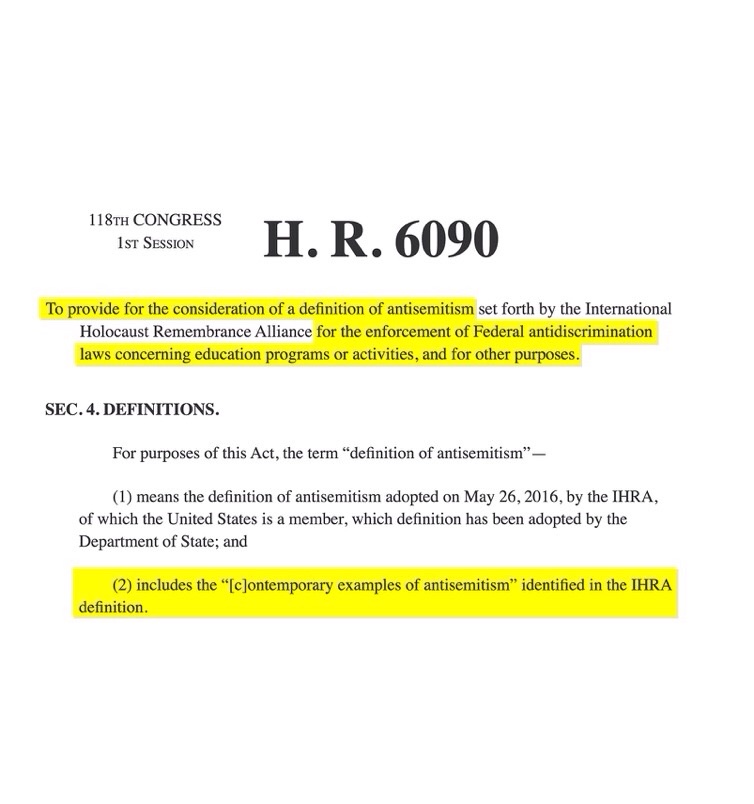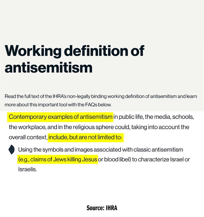 The bill says the definition of antisemitism includes “contemporary examples of antisemitism” identified by the International Holocaust Remembrance Alliance (IHRA). One of those examples includes: “…claims of Jews killing Jesus…”