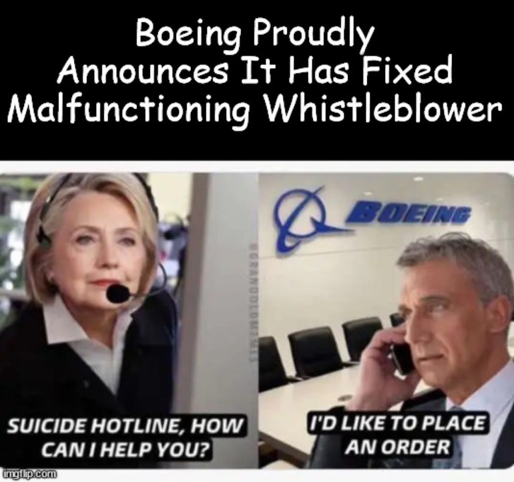 Boeing Sadly Announces Whistleblower Shot Self In Back While Falling Off Skyscraper Directly Into Wood Chipper While Wearing Cement Shoes buff.ly/3Qu5Rxx