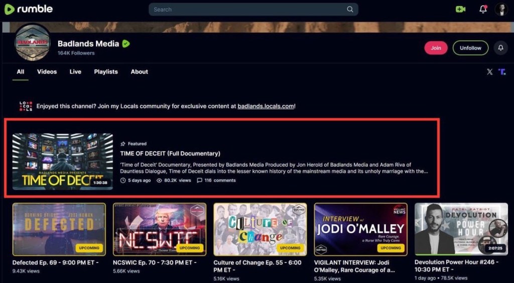 ‘TIME OF DECEIT’ is now pinned to the top of our Rumble channel so it will be easier for everybody to find and share around.