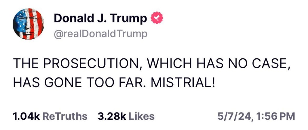 This Witch Hunt is FALSE ANCIENT HISTORY that was fully adjudicated by the Voters in the 2016 Presidential Election. It only has to do with Election Interference, and trying to help Crooked Joe Biden get elected because he can’t do it by himself. It is a vicious attack by the Soros backed D.A., Alvin Bragg, in strict coordination with the D.O.J. and the White House, on Biden’s Political Opponent, ME. IT IS ILLEGAL, UNCONSTITUTIONAL, AND STRICTLY THIRD WORLD COUNTRY!
