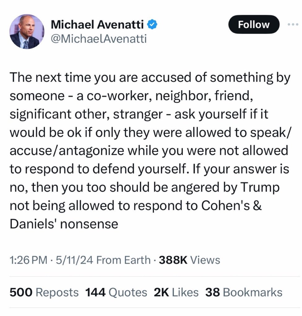 Per this unconstitutional gag order DJT is not allowed to talk about the details of this malignantly BS case all the while (i.e. Nancy Pelosi’s “Wrap Up Smearing”) everyone else involved can say whatever spurious things they want and this gets published with all the gaslighting [DS] rants in the MSM Mockingbird press to “mislead the jury” by design. We must hope the majority of the American public can see right through this psycho-political charade.