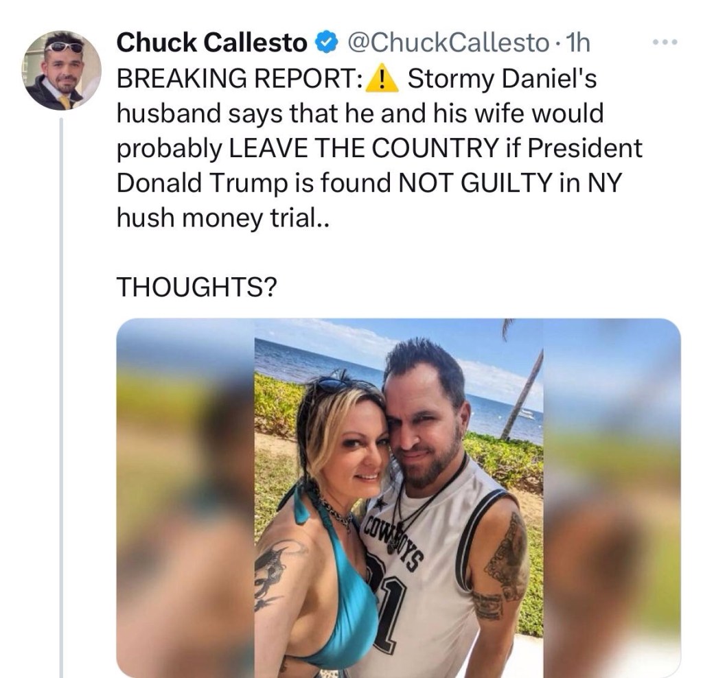 Ummm…Stormy’s husband talks about fleeing oops I meant leaving the country if President Trump is found NOT GUILTY! 😳