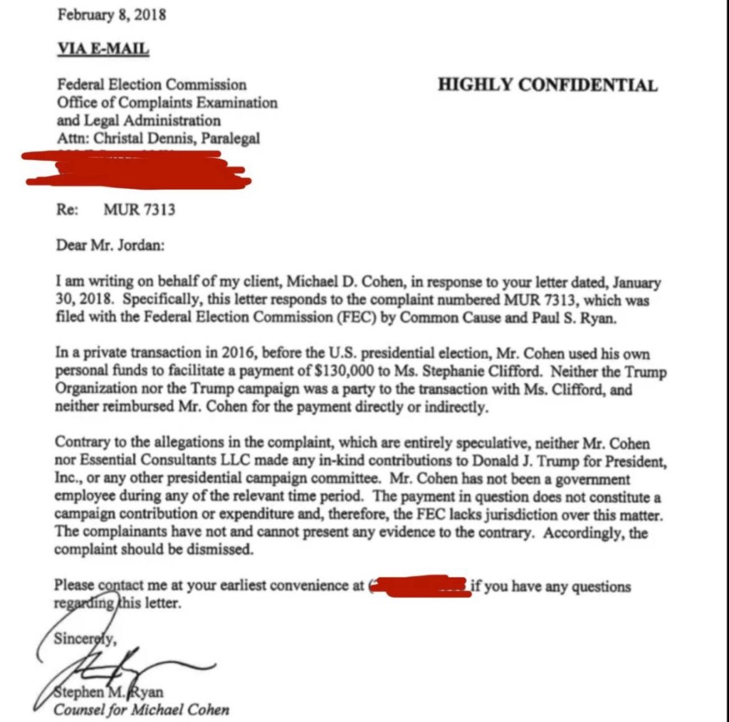 This sham case has no crime and this letter 👆from Cohen’s own attorney admits that Trump et al. did not pay $130k to Stormy….Cohen did!