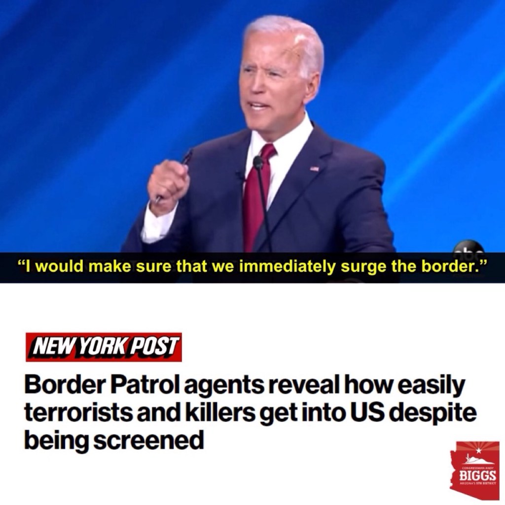 President Trump: We’re allowing terrorists into our country. We’re allowing prisoners and people form mental institutions and insane asylums int our country. Nothing good is going to happen…we’re one hundred percent going to be in big, big, trouble. And they’re building in numbers that you’ve never seen before. Even large number of Chinese warriors are flowing into our country. They’re all aged from nineteen to twenty-five, and almost every one of them is a man. What’s that all about? Twenty-nine thousand over the last month and a half…what are they doing, building a little army in our backyard?