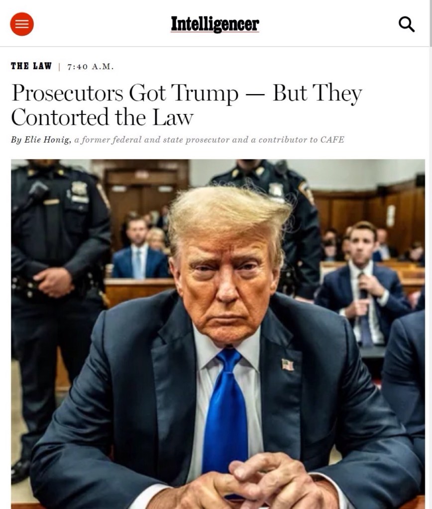 4. “The charges against Trump are obscure, and nearly entirely unprecedented. In fact, no state prosecutor — in New York, or Wyoming, or anywhere — has ever charged federal election laws as a direct or predicate state crime, against anyone, for anything. None. Ever.”