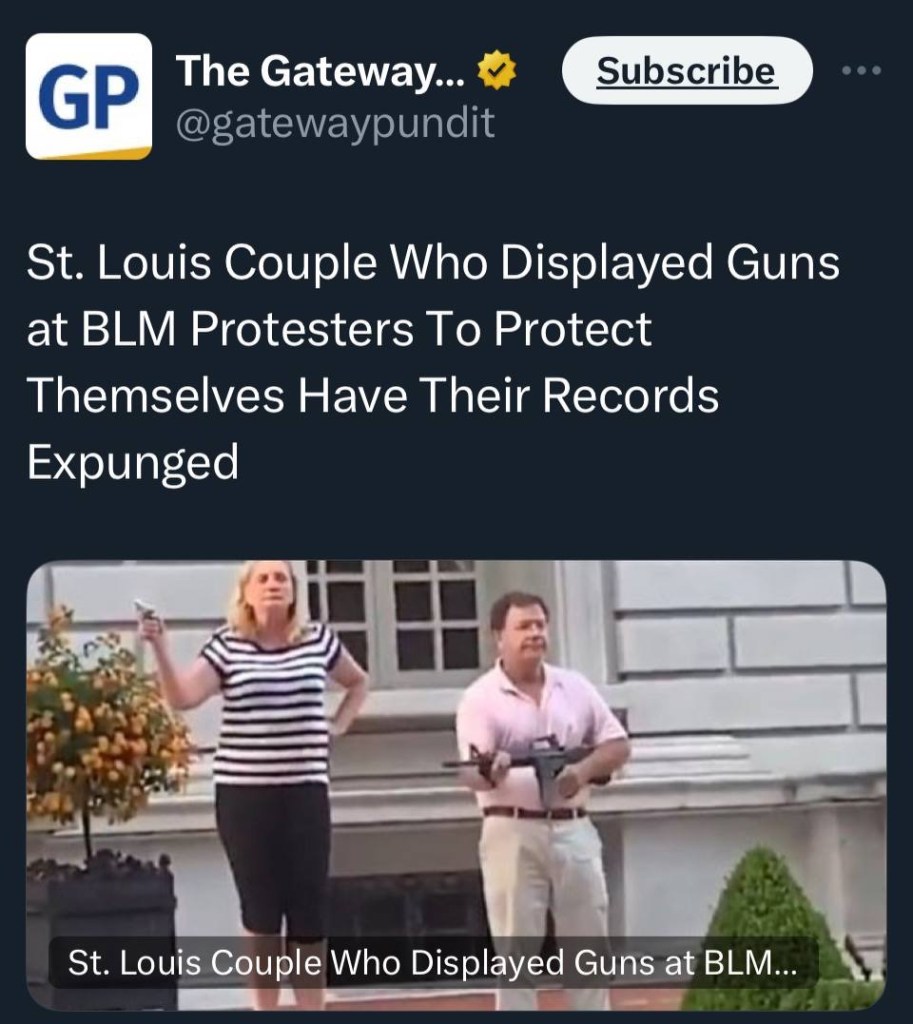 St. Louis Couple Who Displayed Guns at BLM Protesters To Protect Themselves Have Their Records Expunged.