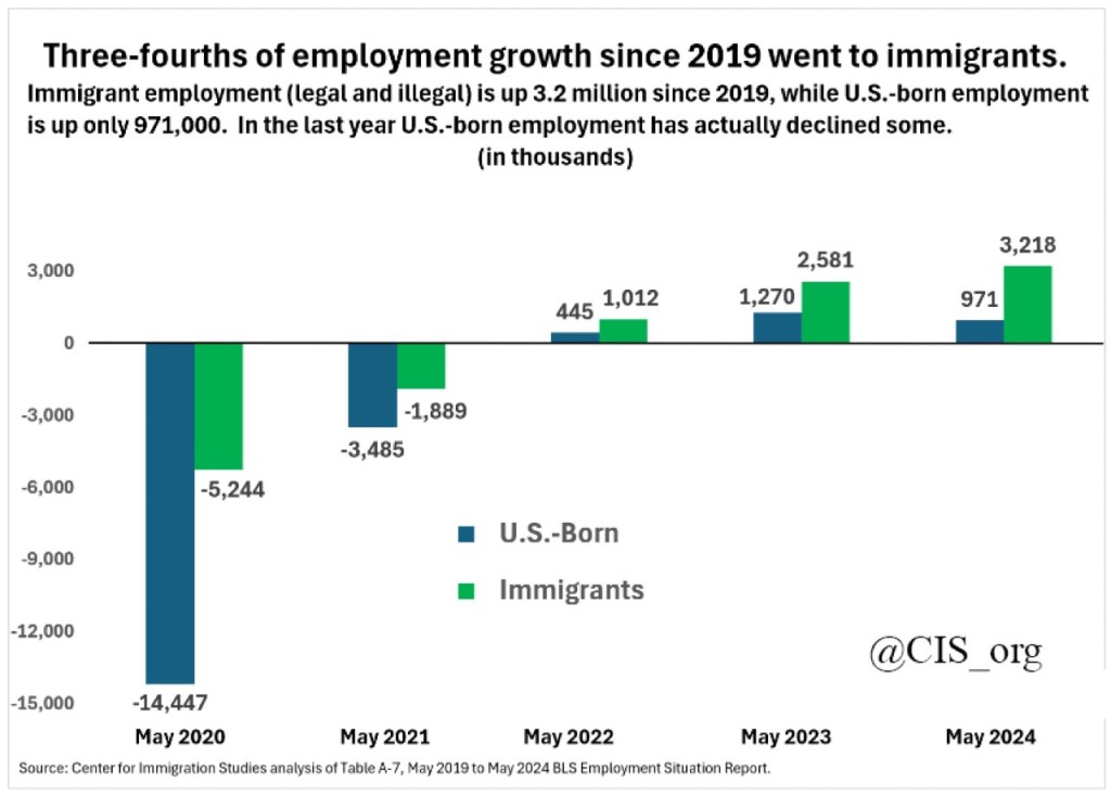 In the last four years, 3/4 of all new jobs have gone to immigrants, illegal or otherwise.