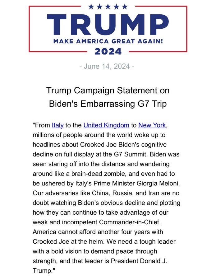 🚨Trump statement on Biden at the G7