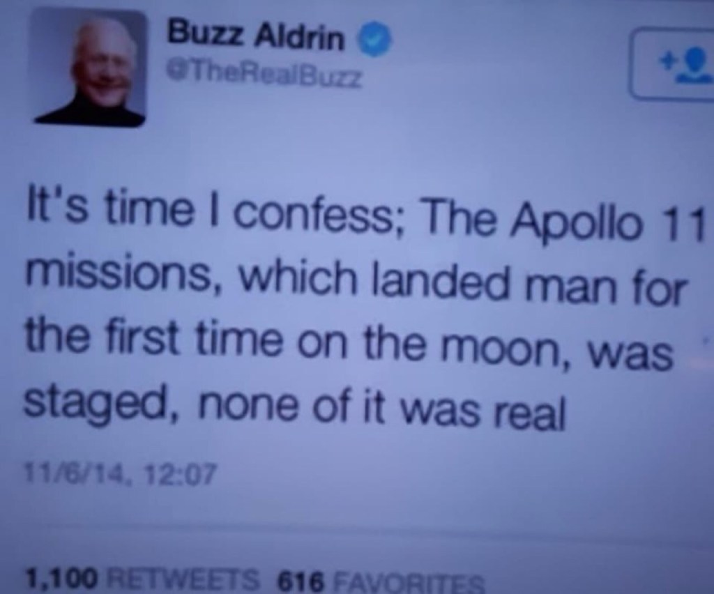“It’s time I confess; The Apollo 11 missions, which landed man for the first time on the moon, was staged, none of it was real”