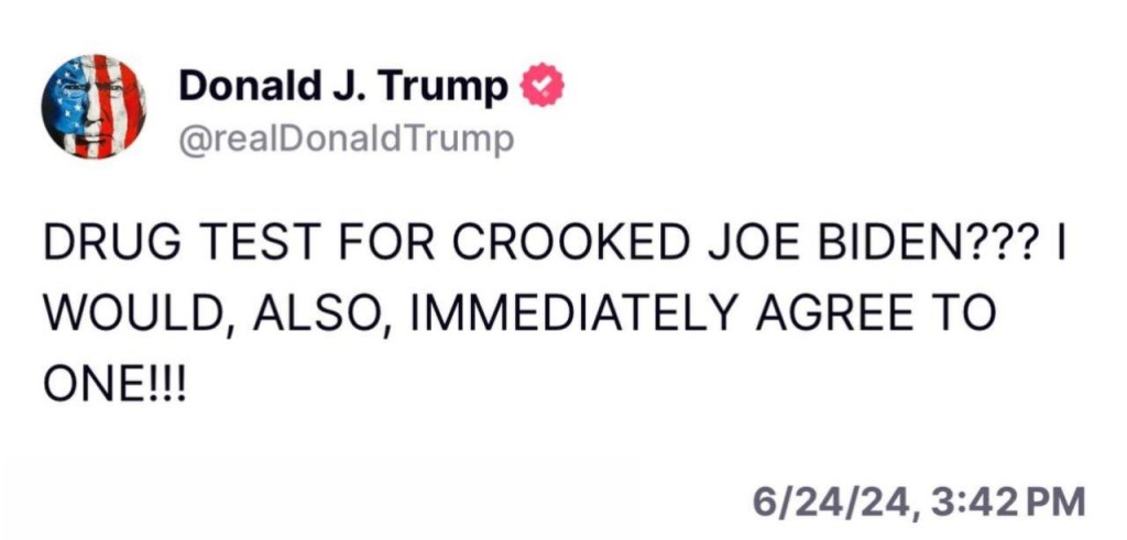 DRUG TEST FOR CROOKED JOE BIDEN??? I WOULD, ALSO, IMMEDIATELY AGREE TO ONE!!!