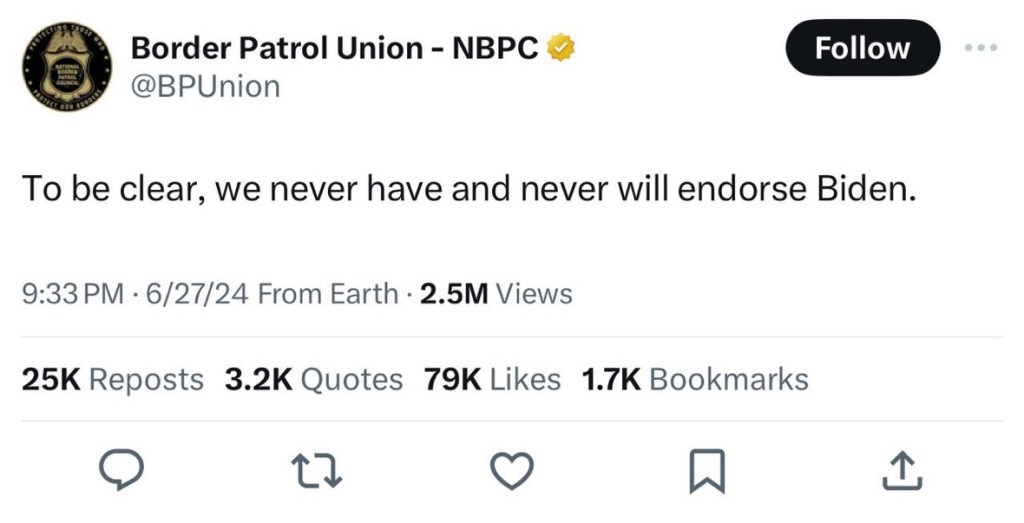 Border Patrol Union: “To be clear, we never have and never will endorse Biden.”