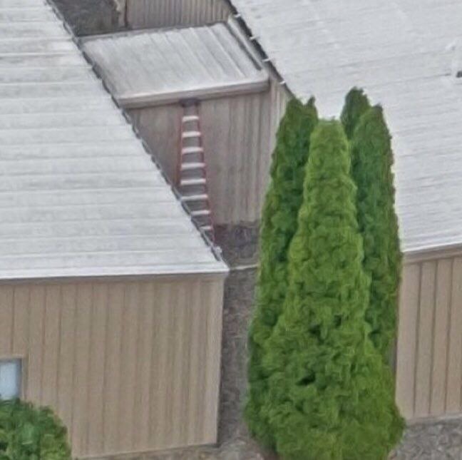 Can’t see the bottom rungs but this is either a 10ft or a 12ft fiberglass step ladder. Just so you know – they’re heavy to carry. They weigh around 40 pounds but carrying them is very awkward over a long distance – that noodle-armed kid wouldn’t have a chance.