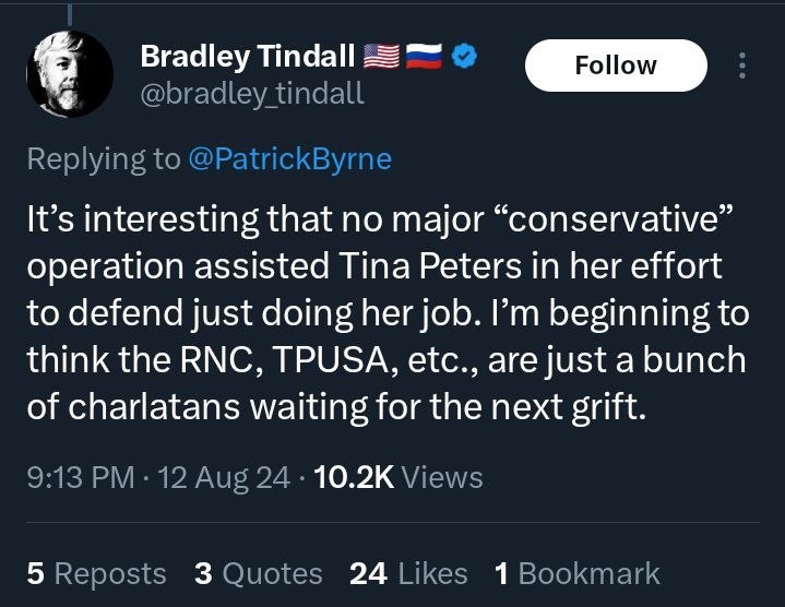 Election warrior, and my friend, Gold Star Mom Tina Peters was convicted by a DeepState Court in Colorado Inc., US Inc., of made-up charges for her efforts to safeguard the sanctity of CO Elections