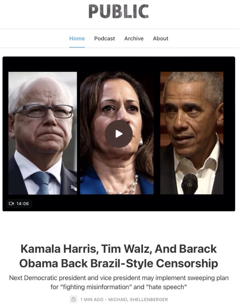 People think Brazil-style censorship couldn’t happen here, but it could. Indeed, Kamala Harris, Tim Walz, and Barack Obama have all called for heavy-handed government censorship like that of Brazil and Europe, complete with banning disfavored individuals across platforms.