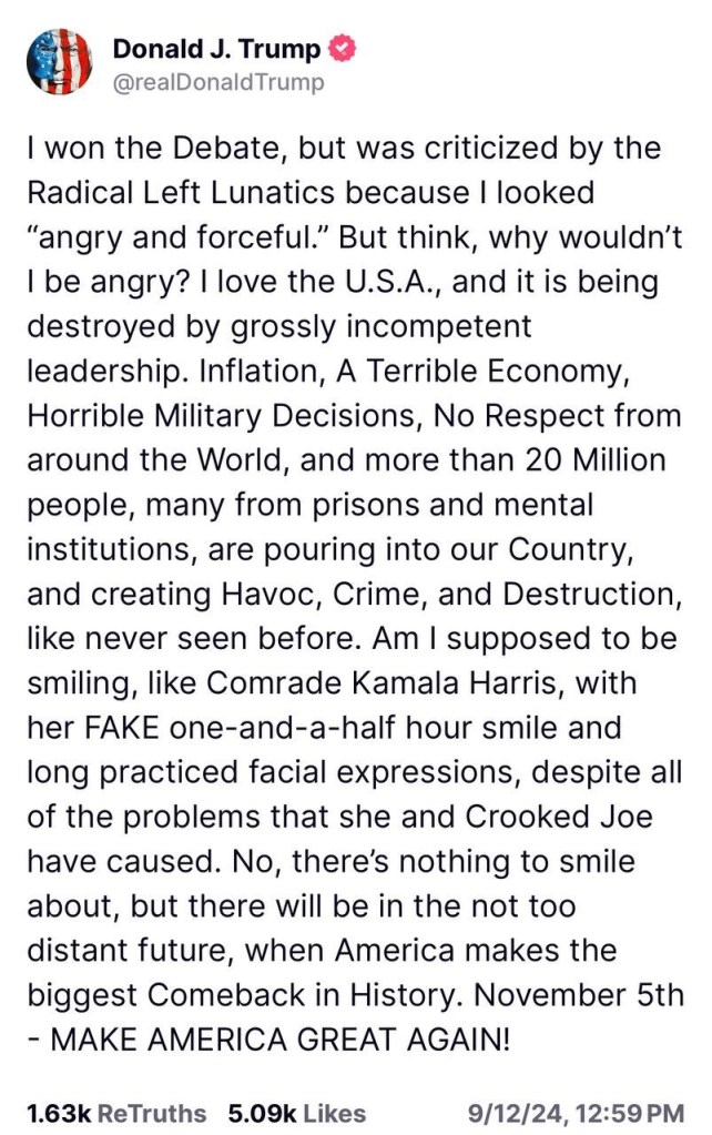One must understand the likes of DNC’s Cackling Kamala Harris are criminally insane or simply put psychotic by definition. You can’t debate or negotiate with a psychotic person as a rule because they are insane. Kamala’s psycho-political SOP is always going to be an Act of Treason because it’s always a deceptive lie by intent. Kamala’s objective is to destroy America as we know it and that’s not debatable!