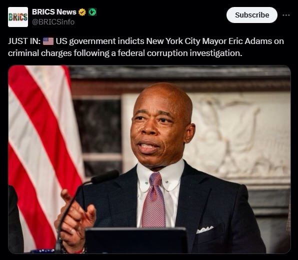 BREAKING: New York City Mayor Eric Adams has been indicted by a federal grand jury on criminal charges.