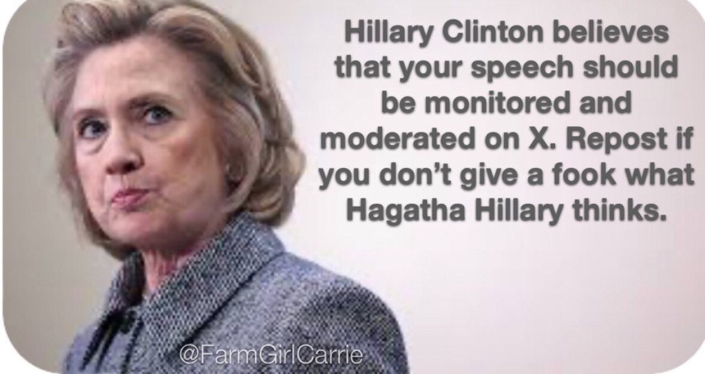 Hillary Clinton is a malicious treasonous criminally insane obscenity; that’s putting it lightly. HRC is guilty of the most horrendous crimes against Americans & Humanity imaginable even too grotesque to put into words. Of course Hillary Clinton wants to censor free speech.