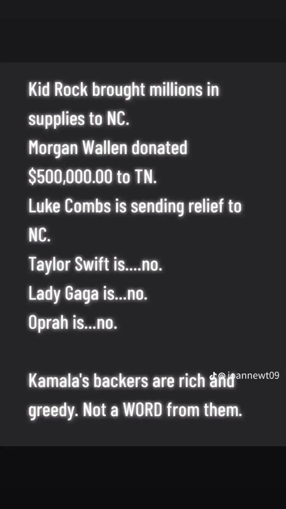 The GREAT people of North Carolina are being stood up by Harris and Biden, who are giving almost all of the FEMA money to Illegal Migrants in what is now considered to be the WORST rescue operation in the history of the U.S. On top of that, Billions of Dollars is going to foreign countries! NORTH CAROLINA HAS BEEN VIRTUALLY ABANDONED BY KAMALA!!! DROP HER LIKE SHE DROPPED YOU – VOTE FOR PRESIDENT DONALD J. TRUMP. MAGA2024!