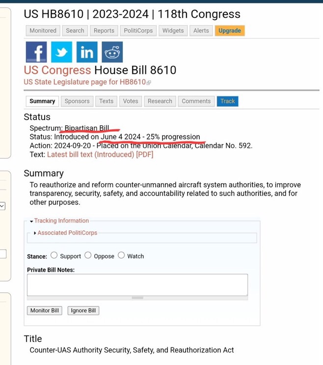 It seems the Drone Scares Are Being Used by the Government to Manipulate Congress Into Passing H.R. 8610 (Counter-UAS Authority Security, Safety and Reauthorization Act of 2024)